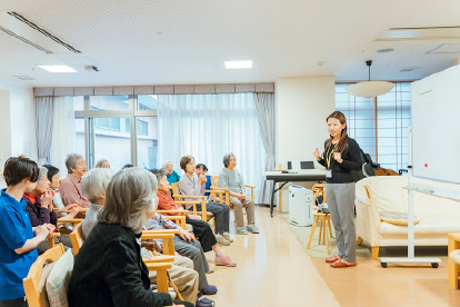 また、言語聴覚士との出会いをきっかけに、楽しく歌いながら肺炎・認知症を予防する“喉トレ“の開発に至る。「世の中の全ての人に、人生を最後まで楽しく過ごしてほしい」という思いから、“喉トレ”の普及活動を展開している。